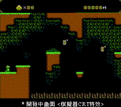 ■ 到底要做什麼類型的遊戲? 我們到底要做什麼類型的紅白機遊戲?簡單來說,就是動作遊戲。玩家在畫面中走走跳跳,躲避怪物與陷阱,想辦法到達終點的動作冒險遊戲。而這款遊戲,是我們多年前製作的某幾款遊戲的前傳。 左圖是目前開發中的畫面,目前開發進度約 15% 。